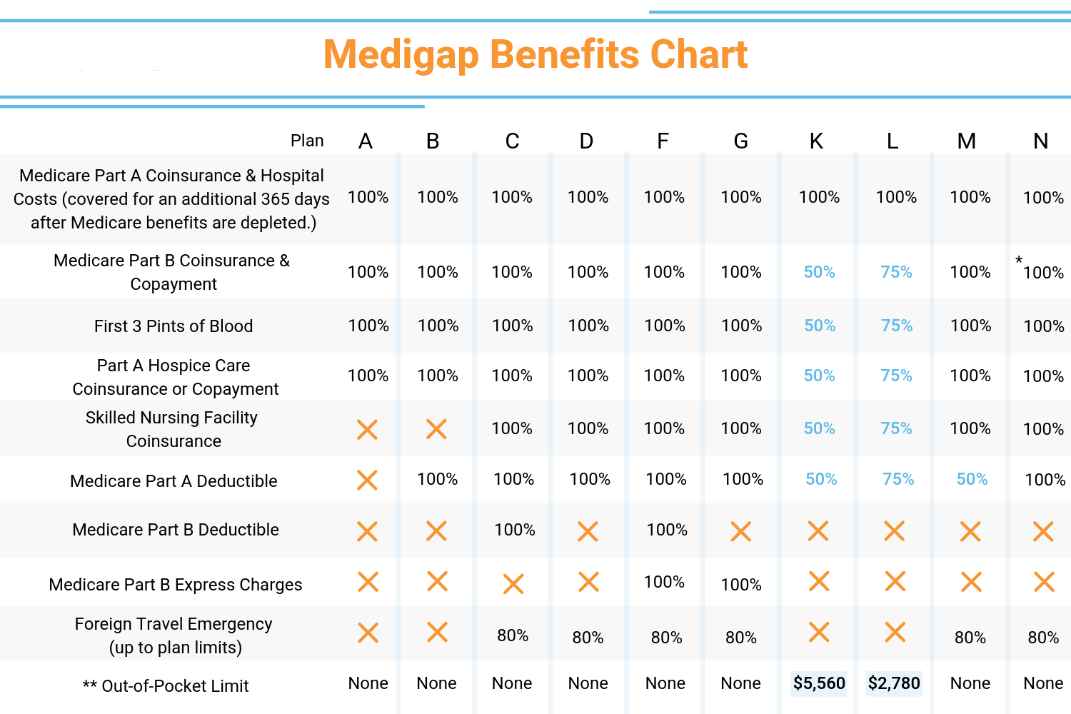 **Plan K and Plan L provide for different cost-sharing than plans A-F. Once you reach the annual limit, the plan pays 100% of the Medicare copayments, coinsurance and deductibles for the rest of the calendar year. The out-of-pocket annual limit does NOT include charges from your provider that exceed Medicare-approved amounts, called “excess charges.” You will be responsible for paying excess charges.
